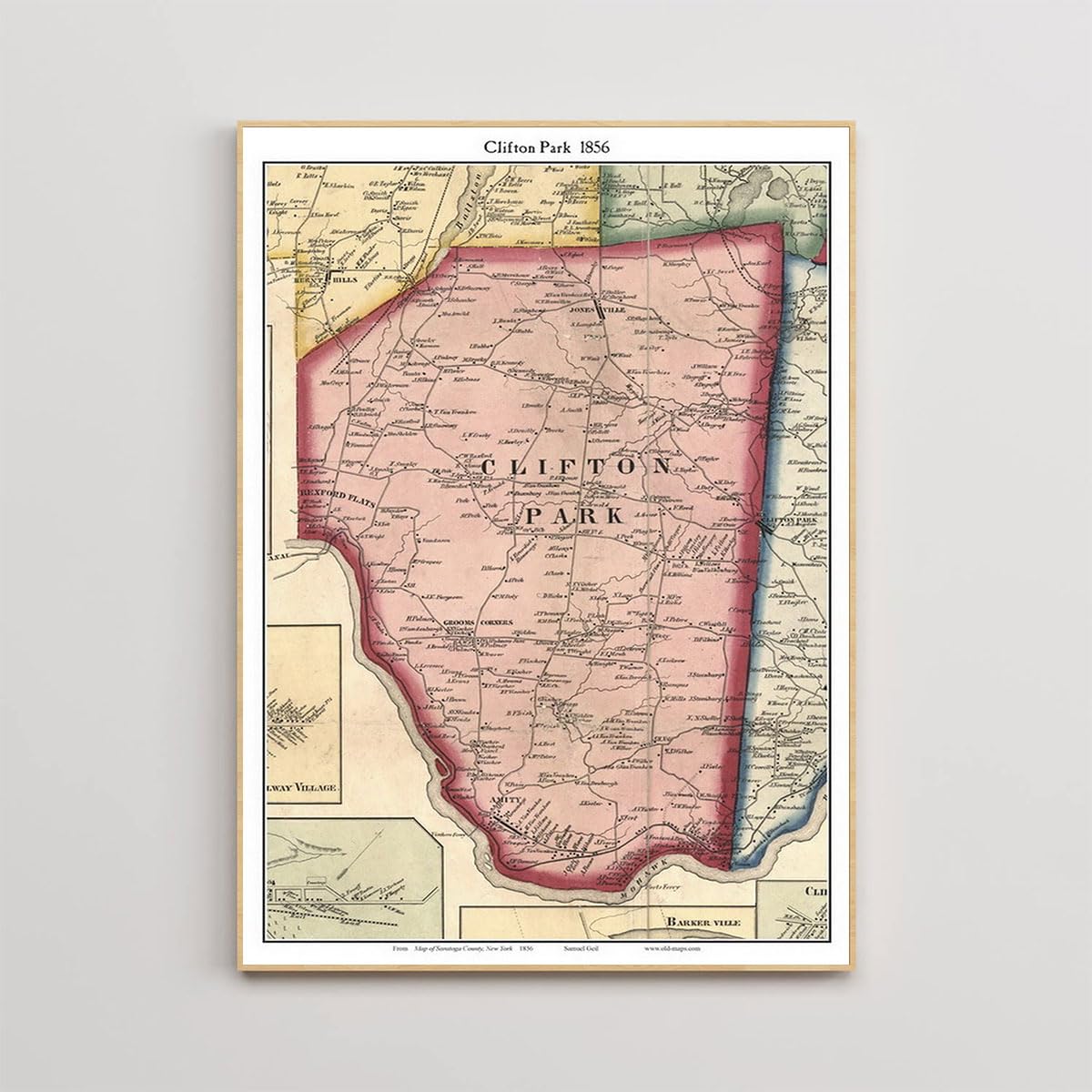 Amazon.com: MG Global Historical Map Poster of Clifton Park 1856